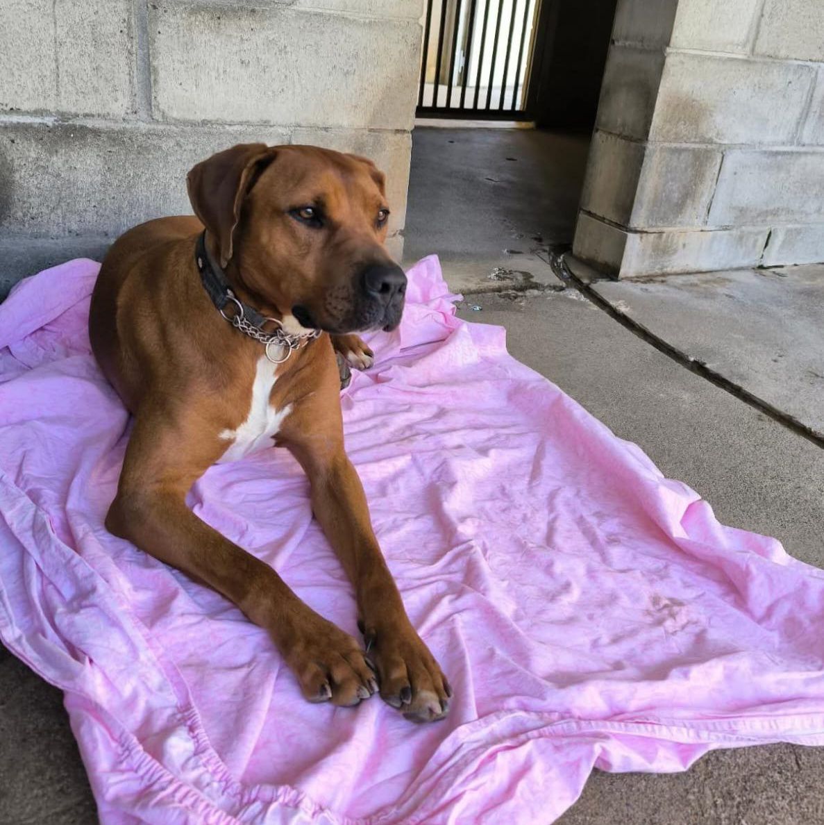 stato abbandonato legato in un bosco fuori dal canile a settembre 2023, magrissimo, insieme alla sua compagna Megan.