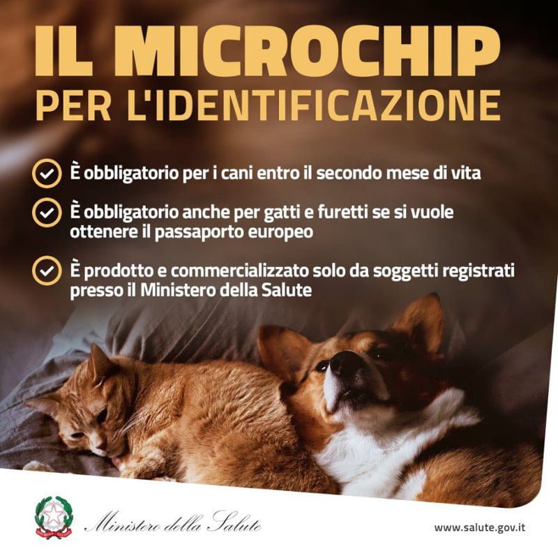 Il microchip per i cani è obbligatorio e va fatto mettere da un medico veterinario entro il secondo mese di vita del cane (o entro 30 giorni dal possesso di un animale non identificato).